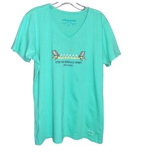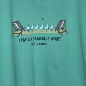 Life is Good Womens Crusher T Tshirt Light Green Large. "Stay Six Seagulls Apart" Life is Good Print