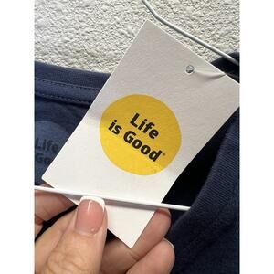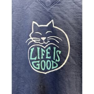 Life is Good Women’s L Blue Cat Graphic V-Neck Short Sleeve T-Shirt