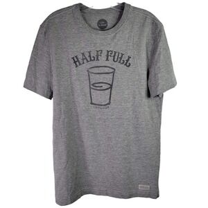 Life is Good Womens Medium Glass Half Full Short Sleeve Tee T-shirt Gray Crew