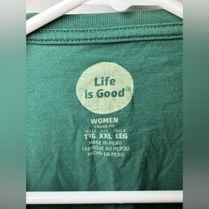 Life is Good Women’s Sz XXL Green Long Sleeve T-Shirt V-neck HEART TREE FLAG
