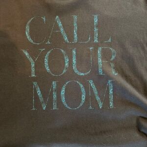 "Call Your Mom" design on front with blue flowers (see close up pic)