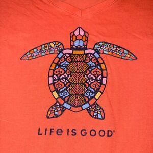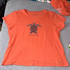Keywords: Life is Good, T-shirt, Womens, XXL, Extra Extra Large, Coral, Turtle, Graphic Tee, V-Neck, Casual, Summer, Beach, Comfortable, Crusher Tee