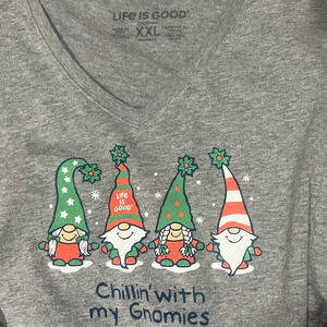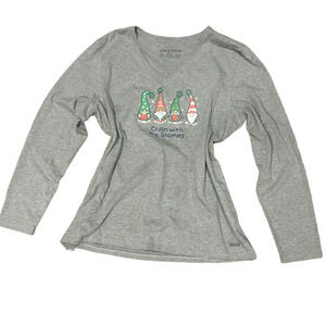 Life is Good XXL long sleeve Christmas holiday Gnomies grey v-neck crusher t-shirt women’s