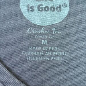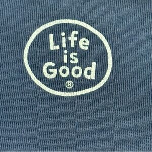 Charcoal tee featuring a white 'Life Is Good' logo. Simple and stylish. Pre owned good condition
