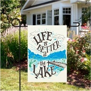 Life is Better at the Lake Outdoor Garden Flag 12.5" x 18 First picture is item for sale Last picture is showing how it is hung