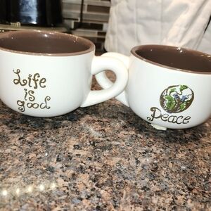 Enjoy your favorite beverages with these fun life is good Peace white ceramic mugs. Perfect for holiday get together or hot chocolate. Especially this time of year. the price is for one mug but i have 6 available. eight ounce mugs