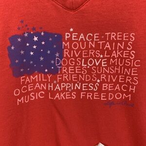 Life is good Red V-Neck Crusher Tee Patriotic American Flag Freedom Peace size M