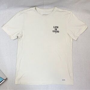 Putty colored tee with life is good on front and Salem Mass wicked good on back - size med - very gently worn, no flaws