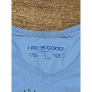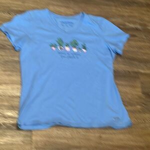 Life is good neck blue top with Home is where you plant it. Sz L no flaws. Measures as pictured