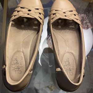 Lifestride bone colored leather cut out design flat. New like condition worn a few times.