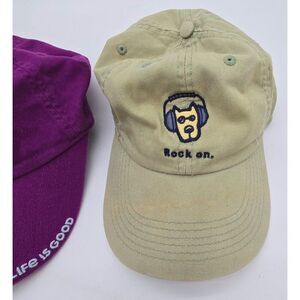 Life Is Good Embroidered Baseball Caps Set Of 2 "Rock On" & Daisy Adjustable