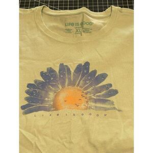 Life Is Good XL Women's Tee Shirt Sunflower Print Light Green Cotton