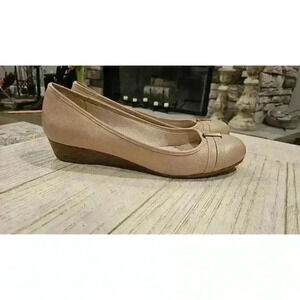 Keywords: LifeStride, Abigail flats, beige flats, women's shoes, leather flats, comfortable flats, slip-on shoes, round toe flats, work shoes, casual flats, Soft System technology, metal accent flats, women's footwear, size 10 flats