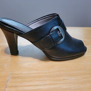 LifeStride Black Peep-Toe Mules — Soft System Comfort Heels - Size 6