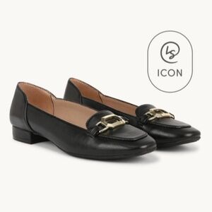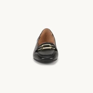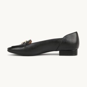 Add polish and the perfect fit to any outfit with these tailored ballet flats for women. Faux leather upper with a subtle square toe, metallic ornament, and lightweight design. Linings crafted from partially recycled materials.