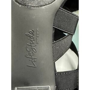Step into timeless comfort and style with these LifeStride Charlotte sandals in classic black. Featuring stretch crisscross straps, an open toe, and a walkable block heel, these sandals are perfect for both casual outings and dressier occasions. Designed with LifeStride’s Soft System® comfort insole for all-day wear.