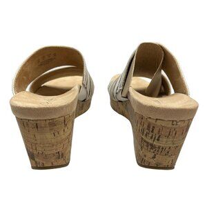 LifeStride Divine Womens 9 Wedge Slip On Sandals Shoes Cork Canvas Multi Strip