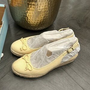 Bow tie detail, an espadrille wedge, and a padded insole make this wedge sandal from LifeStridge the perfect mix of comfort and casual elegance.
