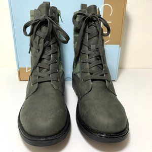 LifeStride Knockout Camo Boots Lace Up Lug Sole Booties Olive Green Size 8 NEW
