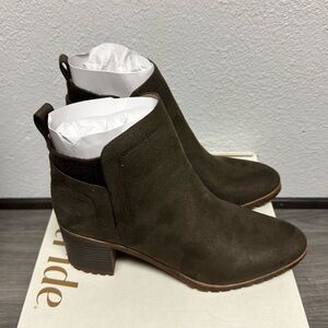 Look cool and feel your best in these comfortable ankle boots for women with built-in stretch. Microfiber upper with a round toe, side zip, back pull tab for easy on/off, stretch gore for added comfort, lug sole, and faux stacked block heel. Linings crafted with partially recycled materials.