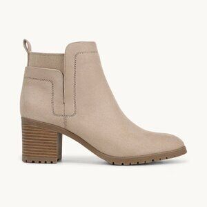 Look cool and feel your best in these comfortable ankle boots for women with built-in stretch. Microfiber upper with a round toe, side zip, back pull tab for easy on/off, stretch gore for added comfort, lug sole, and faux stacked block heel. Linings crafted with partially recycled materials.