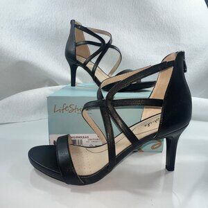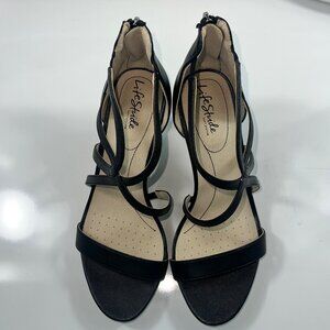 LifeStride Masquerade Black Strappy Heeled Sandals Zipper Back Closure Size 10W