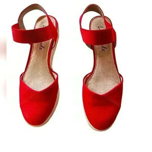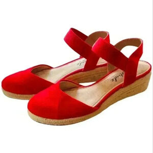 LifeStride Red Espadrilles slip on elastic Straps Closed Toe Wedge Sandals Shoes