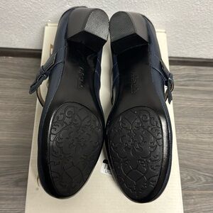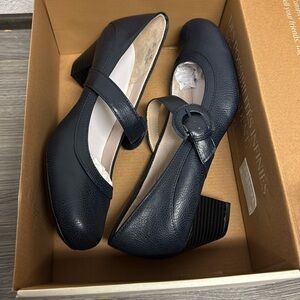 Always chic and sophisticated, this Mary Jane pump is a year-round favorite. Faux leather upper with a round toe, slip-on fit, and Mary Jane-style strap with adjustable buckle accent.