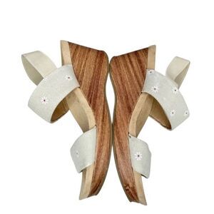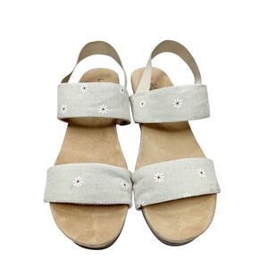 Life Stride Sandals Size 8.5 Gray Floral Elastic Slingback Open Toe Wedges