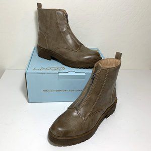 LifeStride Sanibelle Booties Zip Front Lug Sole Boots Stone Brown Size 8 NEW