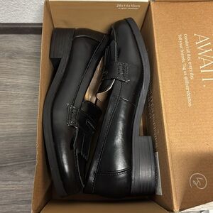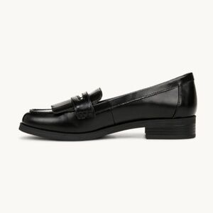 Get in on the tailored trend in this polished womens loafer with menswear-inspired details. Faux leather with round toe, slip-on fit, and penny strap accent with kiltie fringe detail. Linings crafted from partially recycled materials.