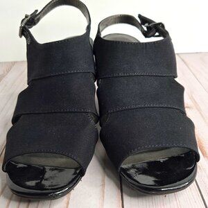 Keywords: Life Stride Faith heels, Simply Comfort, black wedge heels, women’s size 8.5M, patent leather heels, comfortable work shoes, Step Bounce Life Stride, preowned heels