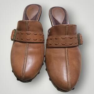 LifeStride Soft System Brown Leather Buckle Clog Mules | Comfort Shoes 7.5