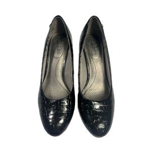 LifeStride Soft System PARIGI CROCO Size 8 Black 2.5" Heels EUC