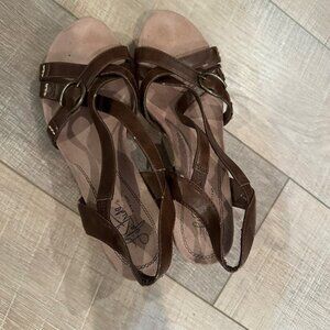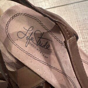LifeStride Womens Brown Strappy Wedge Sandals 8.5M All Man-Made Materials
