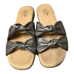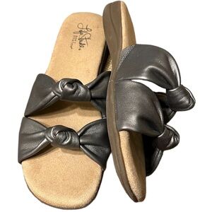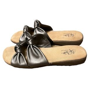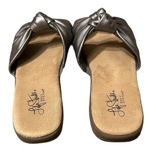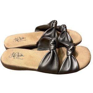 Cute pewter colored sandals with double strap by Life Stride Soft System