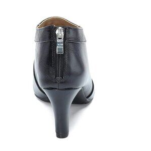 Sleek & sophisticated, this comfy bootie adds a chic feel from work to weekend & beyond. Faux leather is gorgeous with almond pointed toe, back zip, & shootie silhouette. Soft System technology provides support, flex, & cushioning.