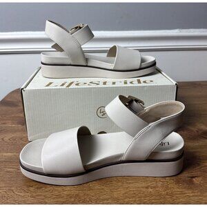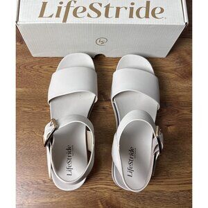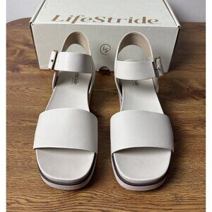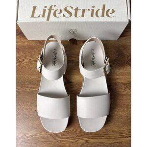 LifeStride Women's Gillian Ankle Strap Sandals Flat White Size 9M