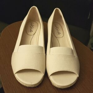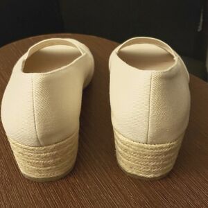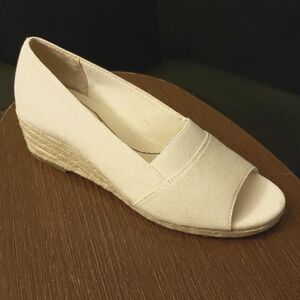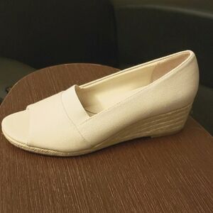 Dress it up. Dress it down. This espadrille wedge is the perfect addition to anything in your closet. Fabric or canvas upper with a peep toe, slip-on fit with stretch gore strap, and espadrille-inspired jute-wrapped wedge.