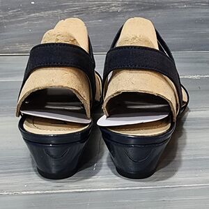 LifeStride Womens Yolo Wedge Sandals Heels Soft System Navy Blue Size 7 Wide