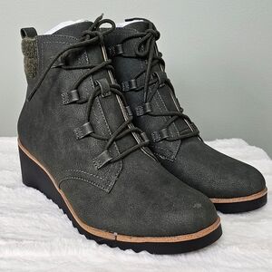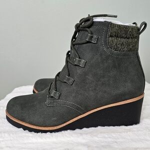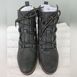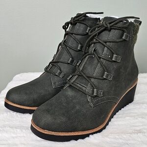 LifeStride Womens Zone Lace Up Ankle Zipper Wedge Bootie 7.5 Olive Green