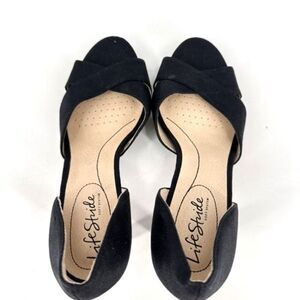 LifeStride Women's Black Peep Toe Mykonos D’orsay Sandal Heels Size 7.5