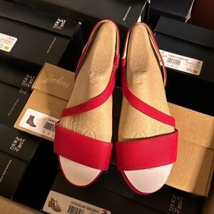 Don an easy-breezy look with the Life Stride Yasmine wedge sandal. Highlighted by asymmetrical straps, this open toe sandal has flexible and cushioning Soft System® comfort package along with stabilizing traction sole.