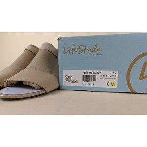 LifeStride Yolo Ankle Strap Wedge Sandals Womens 8 M Taupe Strappy Shoes NWB