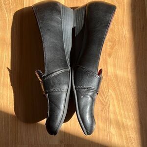 LifeStride Moselle Black Faux Leather Low Wedge Loafers US 10