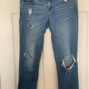 Good condition. Life in progress distressed jeans. Some wear on back but looks like that might be how it’s supposed to be.