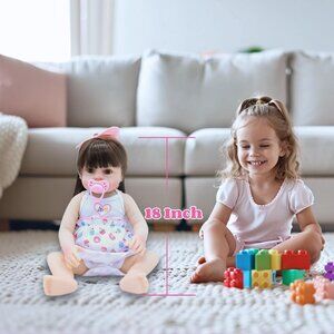 Size: The adorable reborn baby doll measures 18 inches from head to toe, and the vinyl body makes her soft enough and washable all over her body. Her limbs are flexible and moveable, so you can effortlessly put her into a variety of lifelike poses.