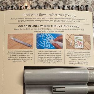 Lifelines FlowArt Pads are guided art meditations designed to help you achieve a calming flow state. Each scene is thoughtfully crafted to encourage repetitive, relaxing movements, promoting mindfulness and reducing stress. UV Art includes 20 meditative scenes and an innovative illuminating marker with 5 interchangeable colors, all in a detachable storage tray. Hover the marker's UV light over the page to reveal hidden, traceable scenes.