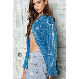 Our most popular sequin top now comes in a new colorway- Ocean Blue! We love the iridescent look- absolutely BEAUTIFUL! These sequin tops run very oversized, so everyone can size down 1-2 sizes from your normal top size UNLESS you want to wear it like a mini dress. Either way, you can't go wrong! Life's a party when you have a closet full of sequins. ;)