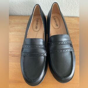 Lifestride London Black Faux Leather Loafers size 9W Wide Width Women Shoes